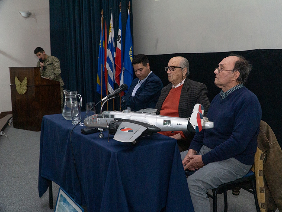 La conferencia se llevó a cabo en el anfiteatro de la Unidad. La disertación comenzó a cargo del ingeniero tecnológico aeronáutico Adrian Alonso, para darle luego paso al Cnel. Oscar Vilche y al Tte. 1° Humberto Arioni, ambos pilotos de la entonces dotación del Grupo de Aviación n.º 3 (Bombardeo).